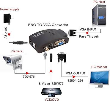 Конвертер BNC / S-Video в VGA VIDEO — Используется для конвертирования видеосигнала со входов BNC / S-Video / VGA в VGA выход ( вход: VGA, SVHS, AV, выход VGA