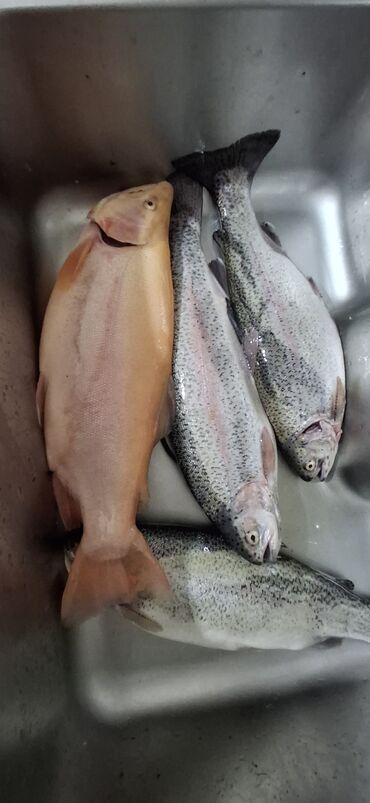 Свежемороженая радужная форель, вес рыбы от 0.9 до1.3кг от5кг и выше доставка бесплатная по городу Бишкек. Цена 500сом за кг. . . ватсап.