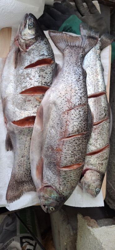 Свежая Форель одна рыба весит 1кг до 1.5 кг адрес город токмок оптом цена 550 сом Описание: - Цельные тушки с головой, чешуя серебристая, розовое мясо. - Свежая разделка: удалены внутренност...