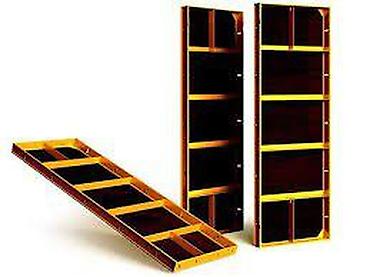 Опалубочная система щитовая для монолитных работ - Щиты стальные/алюминиевые с желтой рамой, облицовка ламинированной фанерой EAGON (черная панель). Разные типоразмеры: узкие и широкие, высотой по...