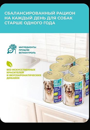 Влажный,вес одной банки 850 грамм чистого мяса,заводское производство Россия, без ГМО без красителей,продается палетой ,палета 6 шт,цена за одну штуку указана,полноценный полностью натуральный корм