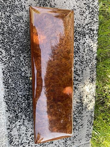 - Материал: шпон капа/корневой древесины с глянцевым лаковым покрытием; выразительный рисунок древесины.