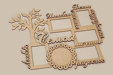 - Панно-коллажи и фоторамки (в т.ч. семейные деревья) с надписями, отверстиями под фото, декоративными элементами.