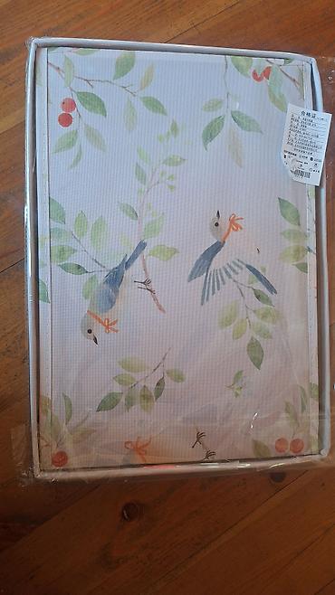 - Дизайн: нежный принт с ветками, листьями и птицами; кант по краю; передняя панель с овальным металлическим люверсом-ручкой.