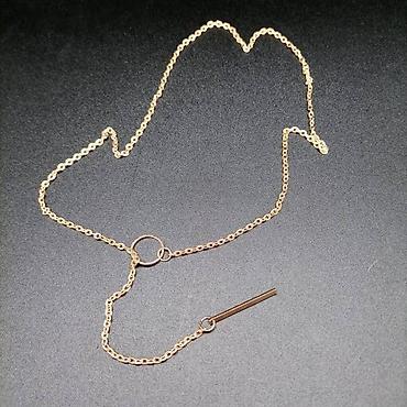 Тонкая золотистая цепочка плавно переходит в кольцо с элегантной вертикальной подвеской — минимализм, который никогда не выходит из моды.