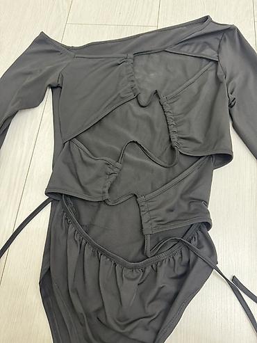 - Дизайн: асимметричные фигурные вырезы спереди, сборки на кулиске; несколько тонких завязок для регулировки посадки и акцентов.