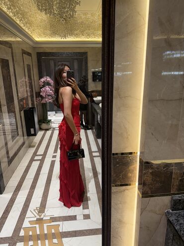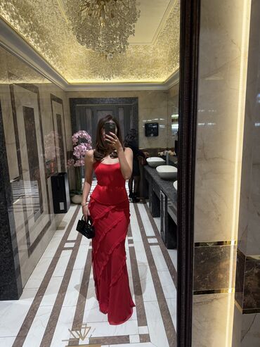 Вечернее платье, Русалка, Длинная модель, Атлас, Без рукавов, Корсет, S, M