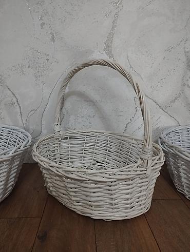 Набор плетёных корзин разной формы и размера: 57 см без ручки - 1500 сом 44 см - 1000 сом 33 см - 500 сом 40 см - 1000 сом 36 см белая - 500 сом 35 см прямоугольная - 700 сом 26 см с бантико...