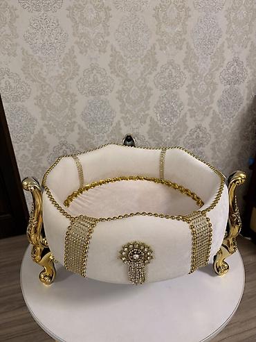 Б/ у Себеты корзины келинбохсы на прокат и на продажу , круглый формы, обтянутая мягким бежевым материалом и украшенная кружевом. Корзины стоит на четырех фигурных ножках золотистого цвета. Дополни...