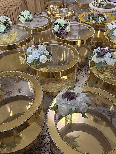 - Назначение: оформление свадеб, помолвок, никахов, торжественных выносов подарков; эффектная сервировка сладостей, фруктов, сувениров.