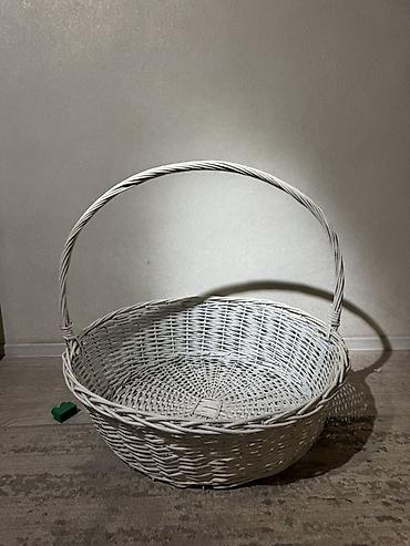 Плетёная корзина с ручкой, окрашенная в белый цвет. б/у в хорошем состоянии Описание: - Материал: натуральная лоза/ивовая лента, ручное плетение. - Цвет: белый, матовый, с лёгкой потертостью под ...