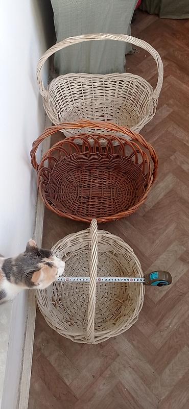Плетёные корзины с ручкой, Среднего размера 3 шт.по 500 Коричневая овальная Размер 40 на 35 Белая овальная 40 на 30 Бежевая круглая 38 на 38