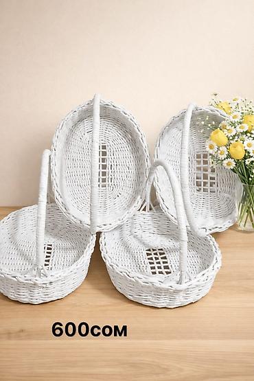 Плетёные корзины с ручкой — несколько моделей и цветов. - Большие овальные корзины белого и натурального цвета — по 500. - Средние белые корзины — по 500. - Малые корзины — по 300. - Белая небольш...