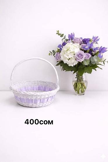 Плетёные корзины с ручкой, белые. подойдет для 500роз🌹 - Материал: ивовая/ротанговая лента (выполнены вручную, плотное переплетение). - Цвет: белый, матовый. - Форма: круглая, высокая арочная ручка...
