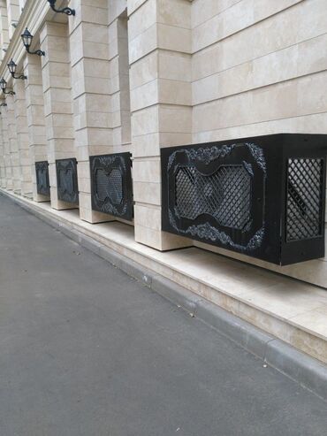 Декоративные экраны для кондиционеров, изготовленные из металла с перфорированным узором. Экраны предназначены для установки на наружные блоки кондиционеров, скрывая их и улучшая внешний вид фасада...