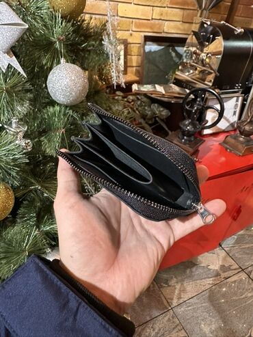 Компактный черный кошелек на молнии. Внутри несколько отделений для карт и купюр, что делает его удобным для повседневного использования. Молния обеспечивает надежное хранение содержимого.