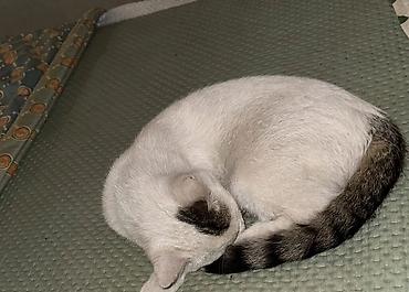 - Окрас: полосатые табби с белой грудкой и лапками, белый с пятнышками и кольчатым хвостом, рыжий с белым. Все с короткой, мягкой шерстью.