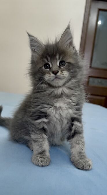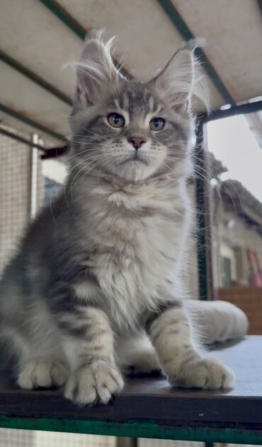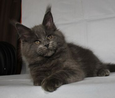 Породистый котенок мейн-кун с характерными кисточками на ушах и длинной пушистой шерстью. Отличается крупным телосложением, крепким костяком и выразительными глазами. Подходит для семей с детьми и другими домашними животными благодаря своему дружелюбному и ласковому характеру. Обладает высоким интеллектом и легко поддается дрессировке, что делает его отличным компаньоном. Идеален для тех, кто ищет преданного и красивого питомца с аристократичной внешностью. Мейн-куны известны своей игривостью и любознательностью, что обеспечит много веселых моментов в доме.