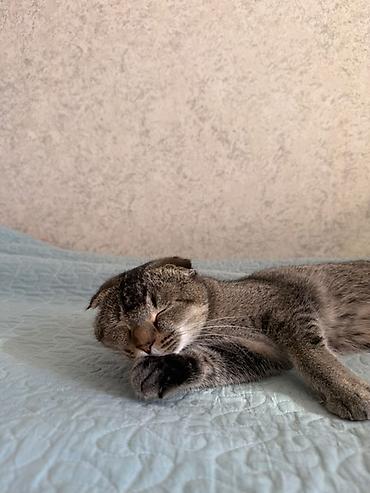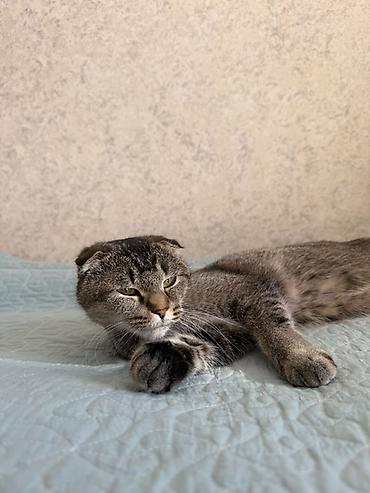 - Спокойный, уравновешенный характер: любит отдыхать, с удовольствием спит на мягком покрывале.