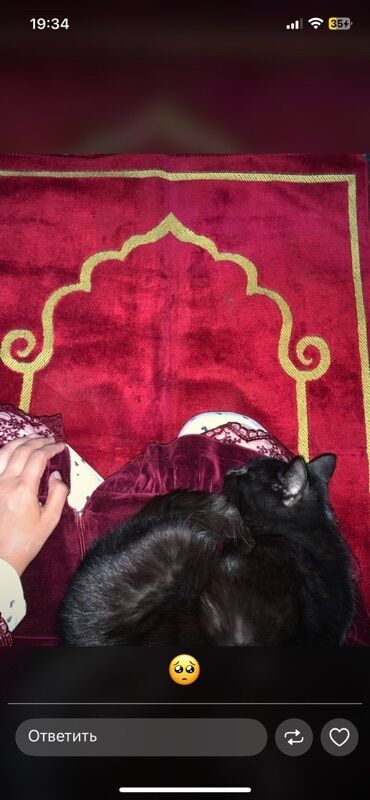 - Чёрный кот/кошка — спокойный и контактный, любит лежать рядом.