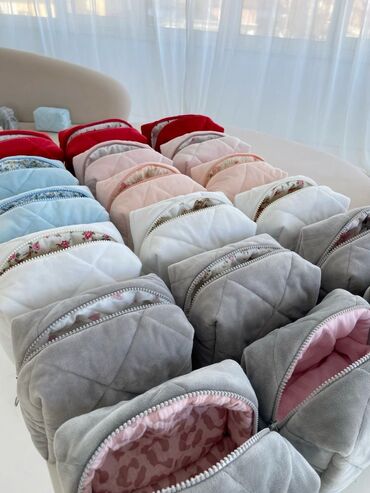 Косметички/органайзеры из стеганой ткани - Формат: компактные объемные чехлы‑коробочки на молнии - Материал: мягкая стеганая ткань, держит форму; подкладка тканевая - Застежка: прочная молния с уд...