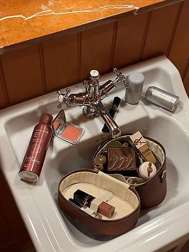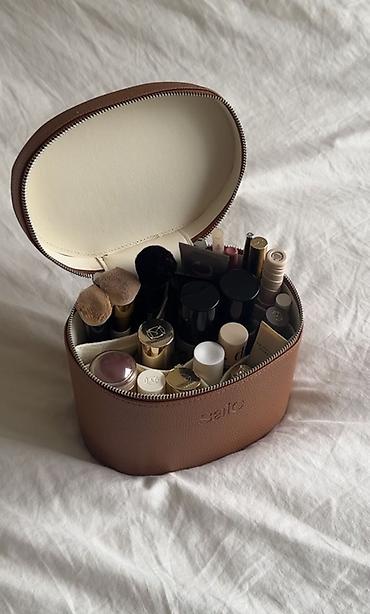 - Продуманная организация: центральное отделение для баночек и флаконов, эластичные карманы/перегородки по периметру для помад, кистей и мелочей, отдельная съёмная/вкладыш‑косметичка с внутренним кармашком.