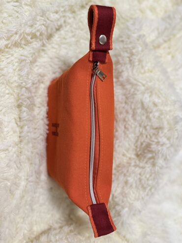 Это косметичка Hermès Bride-A-Brac Case из оранжевого хлопка.