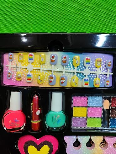 Комплектация товара: 2 лака, 20 ногтей, 12 теней, блёстки, помадка, 2 украшения✅