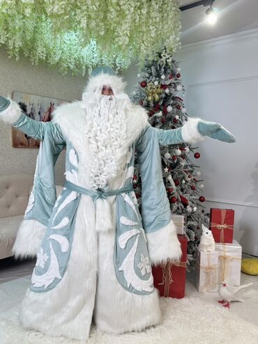 Костюм Деда Мороза премиум класса, ледяной мятно-голубой. Прокат