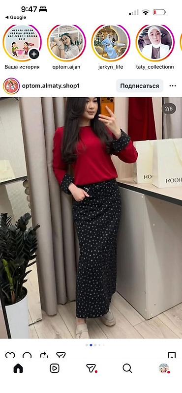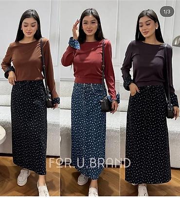 - Варианты цветов верха (по фото): бежевый, красный, коричневый, оливковый, тёмно-сливовый; юбка — тёмно-синяя или чёрная со звёздами.