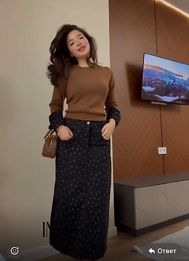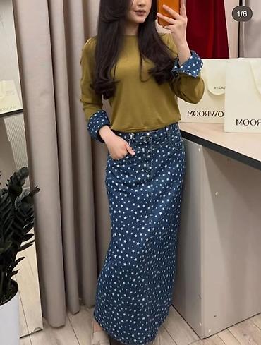 Женский комплект FOR U BRAND: джемпер + длинная джинсовая юбка в звездный принт.