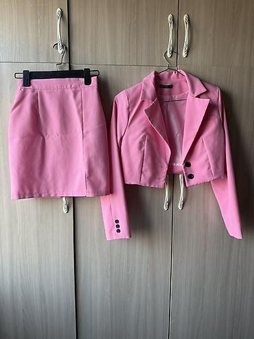 Женский костюм-двойка в розовом цвете: укороченный пиджак + юбка-карандаш. Б/у носила пару раз - Размер: S (бирка на пиджаке). - Цвет: розовый. - Пиджак: укороченный крой, английский воротник, п...
