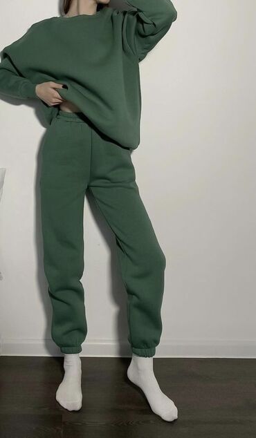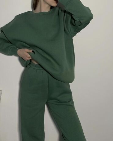 Платная доставкаСамовывозНовый костюм из футера на флисе, красивейшего изумрудного цвета. Свитшот и джогеры. Не подошёл размер ((