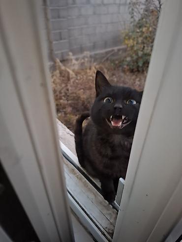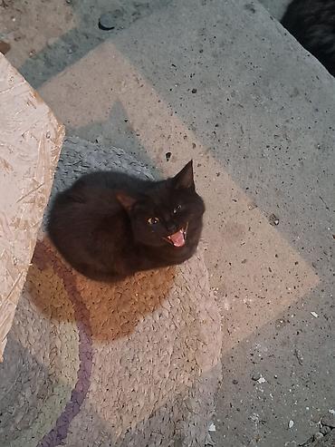 - Черный короткошёрстный котик: выразительные янтарные глаза, глянцевая шерсть, активный, разговорчивый, ориентирован на человека, любопытный. Хорошо ест сухой и влажный корм, тянется к общению.