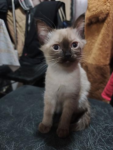 • Котёнок №1 — колор-пойнт (сливочно-бежевый с тёмной маской, ушами и лапками).