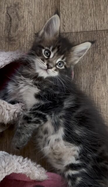 Предлагаются к продаже котята породы мейн-кун с длинной шелковистой шерстью и характерными кисточками на ушах. Эти котята обладают игривым и любознательным нравом. В объявлении представлены фотографии котят с различными окрасами, включая голубой/черный табби с серебром и без, черный дым, голубой дым. Малыши привиты по возрасту, приучены к лотку, имеют полный пакет документов WCF🇩🇪🌐Мейн-куны известны своим дружелюбием и подходят для семей с детьми и другими домашними животными. Они станут прекрасным дополнением к вашему дому и принесут много радости. Котята курируются питомником, продаются дорого