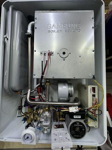Все магистрали из нержавеющей стали 3-х скоростной циркуляционный насос Grundfos (Германия) Японский газовый редуктор SMPS плата Самсунг Сборка и производство котла - Южная Корея Бесшумная работа котла - 43дБ