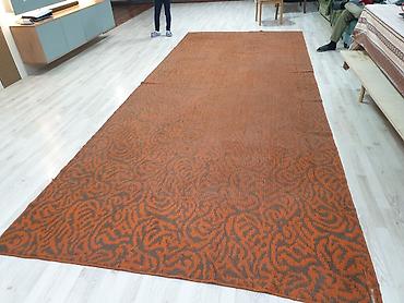 Ковер, большой 4,9м на 2м - Тип: напольный ковер - Цвет и узор: терракотово‑оранжевый с абстрактным орнаментом в коричневых тонах - Форма: прямоугольная - Размер: крупный (подходит для просторной ...