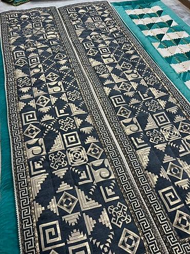 Декоративные дорожки/панно в национальном стиле (пэчворк). - Ручная работа из тканевых лоскутов (сатин/бархатистые ткани), объёмная стёжка. - Геометрические узоры и орнаменты с этническими мотивам...