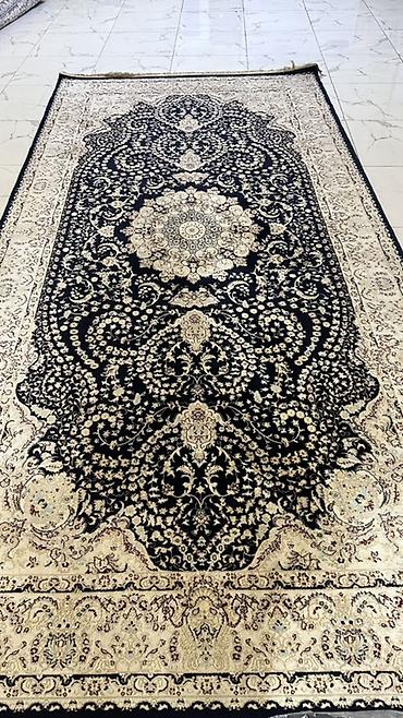- Рисунок: тонкая растительная арабеска, концентрический медальон в центре, сложная орнаментальная кайма по периметру