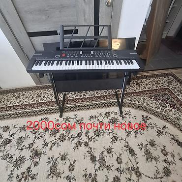 - Синтезатор/электронное пианино с пюпитром и складной стойкой. На фото указано: 2000 сом, почти новое.
