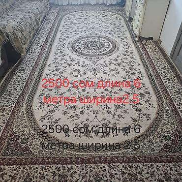 - Ковер классический, прямоугольный, светлый с бордюрным узором и центральным медальоном. Размер: длина 6 м, ширина 2,5 м. Цена: 2500 сом (указано на фото).