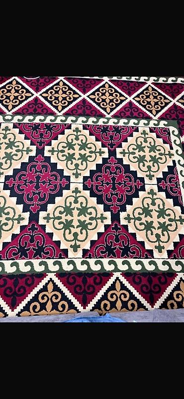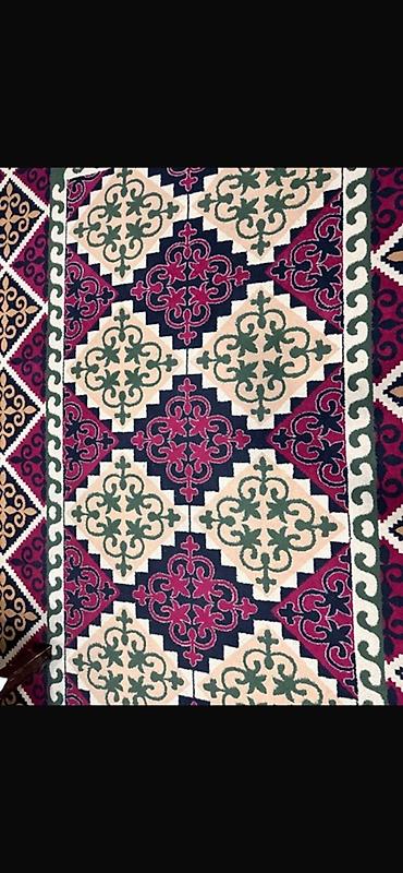 - Традиционный ручной орнамент «қошқар мүйіз» по всему полю и бордюру - Яркая палитра: красный, бордовый, терракотовый, желтый и бирюзовый - Многоуровневая рамка: центральная панель с симметричны...