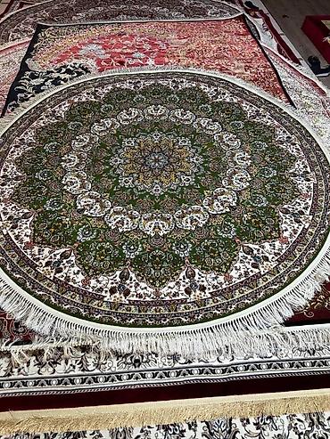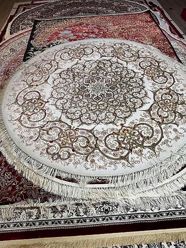 - Формы и размеры: круглые ковры большого диаметра с длинной шелковистой бахромой, а также прямоугольный ковер для гостиной/спальни.