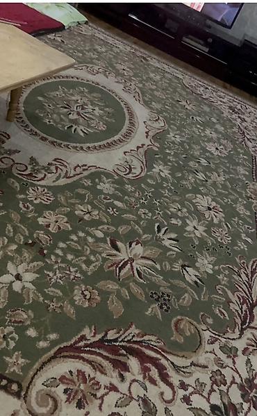 - Модель 4: классический зелёный ковёр с богатым цветочным рисунком, центральным медальоном и кремовым обрамлением; уместен в классическом интерьере гостиной или спальни.