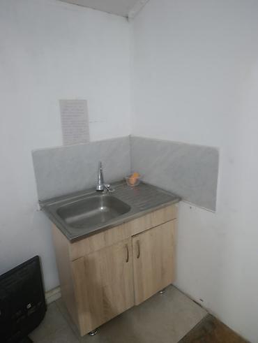 - Мебель: стол с двумя стульями, тумба-кухонный модуль с мойкой и смесителем, шкафчик под раковиной для хранения.