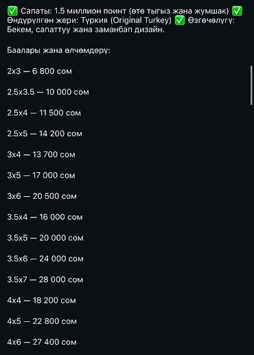 Срочно!!! Килемдер сатылат миллиониик 10 шт бар суйлошуу жолдору бар тушуп берем килемдер жаны ачыла элек оптовый баадан ылдый