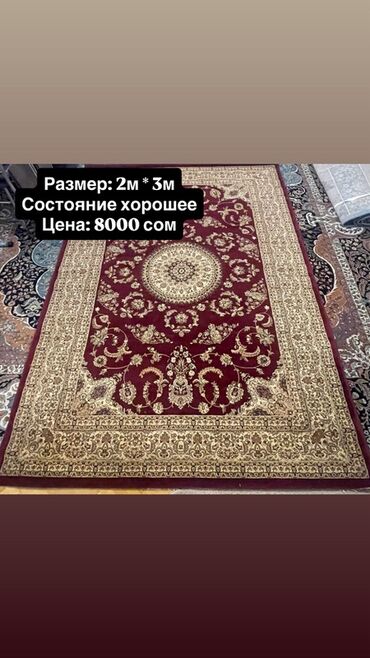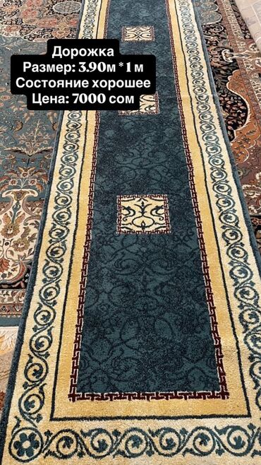 Ковры б/у в хорошем состоянии. Первый ковер на фото производства Турция. Размер 2х3. Цена - 4500 сом. Зеленый и красный ковры, размеры 2х1.6, полушерстяные. Цена -2000 сом за каждый. Дорожка размер...