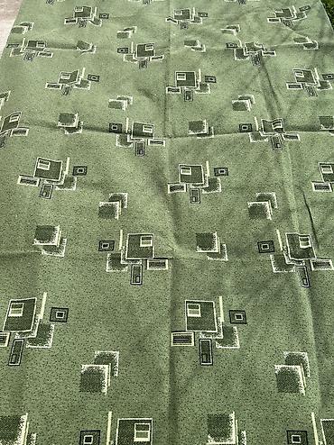 Ковер напольный, узорчатый - Тип: ворсовый ковер - Цветовая гамма: оливково‑зеленый фон с мягким горчично‑бежевым геометрическим орнаментом - Форма: прямоугольная - Размер: ориентировочно на комна...