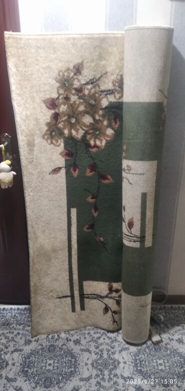 Ковер с восточным орнаментом Ковер размер 3/2.5 м цена по каждый штуке 4000 сом 2 шт в комплекте продаем - Тип: напольный ковер - Форма: прямоугольный - Цвета: бордовый и бежевый (центральное поле...
